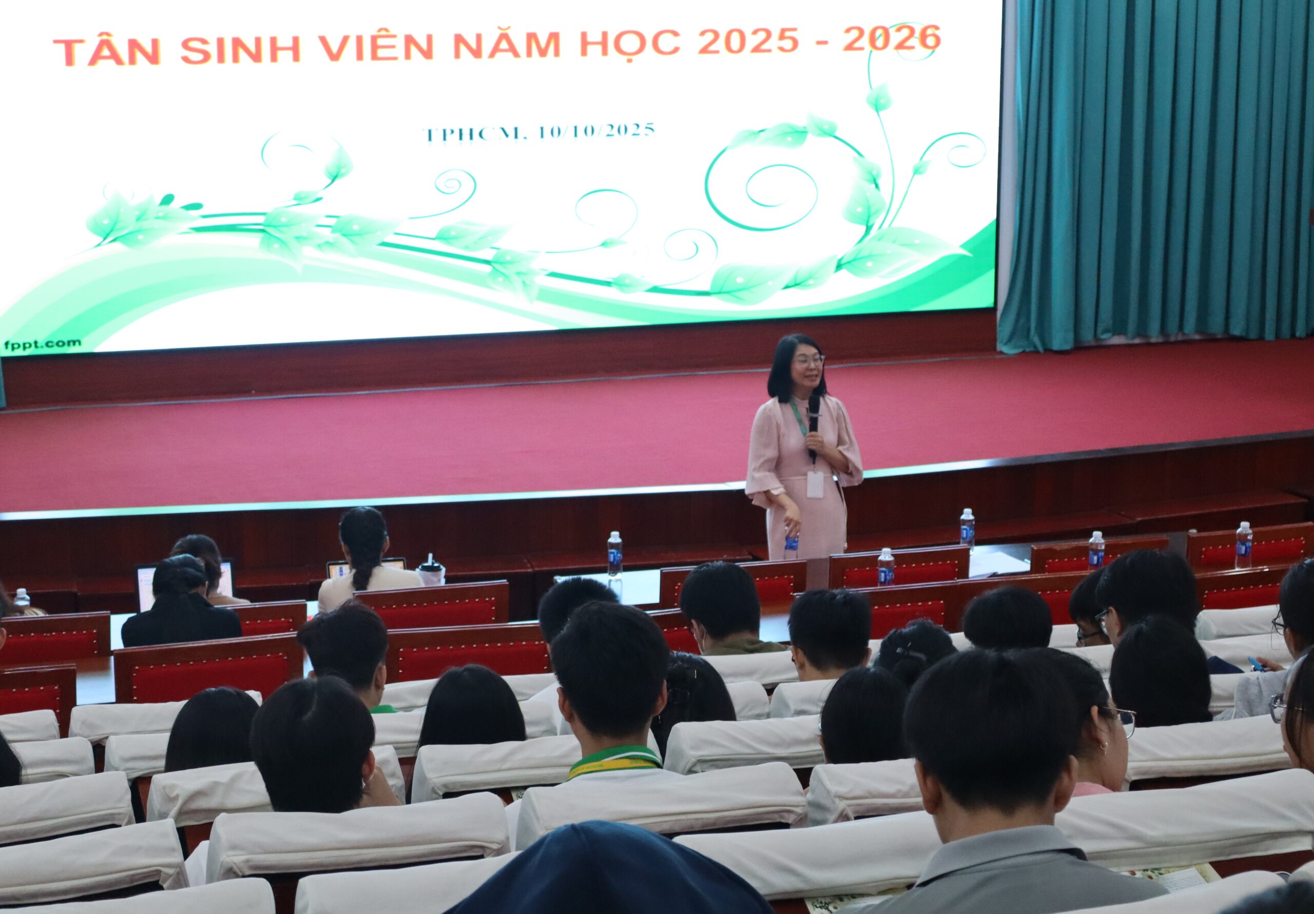 Phát biểu tại chương trình, TS.ĐD. Đặng Trần Ngọc Thanh – Trưởng khoa Điều dưỡng – Kỹ thuật Y học đã gửi lời chào mừng nồng nhiệt đến các tân sinh viên, đồng thời chia sẻ định hướng học tập, rèn luyện và phát triển nghề nghiệp trong bối cảnh đổi mới giáo dục y khoa. Cô nhấn mạnh: “Học điều dưỡng và kỹ thuật y học không chỉ là học để biết, mà là học để phụng sự con người – mỗi sinh viên cần nuôi dưỡng tình yêu nghề và tinh thần nhân ái trong từng hành động nhỏ nhất.”