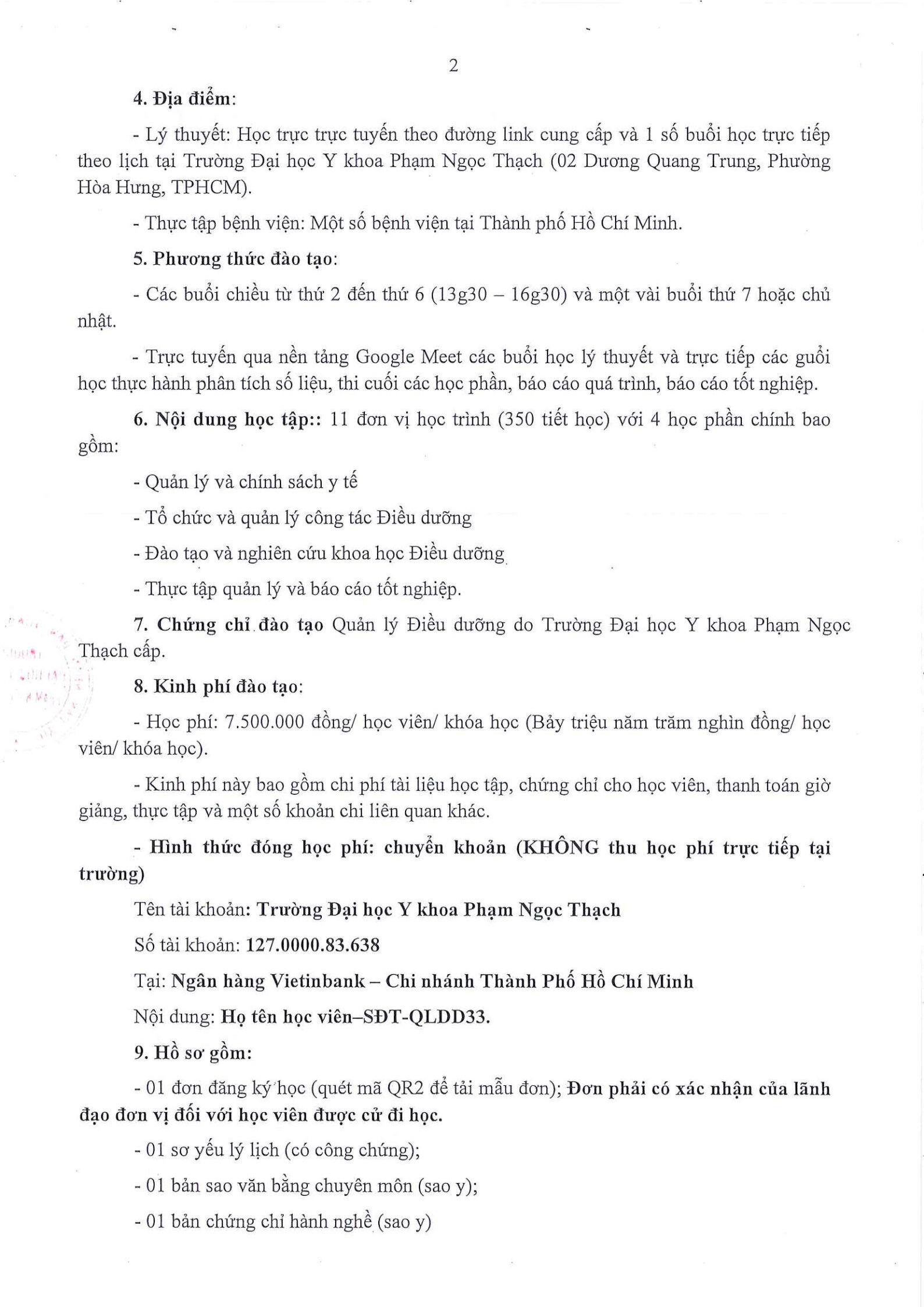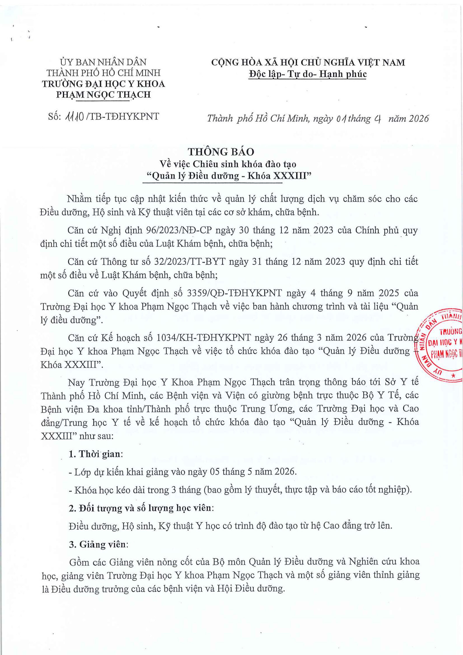 Về việc Chiêu sinh khóa đào tạo “Quản lý Điều dưỡng – Khóa XXXIII”